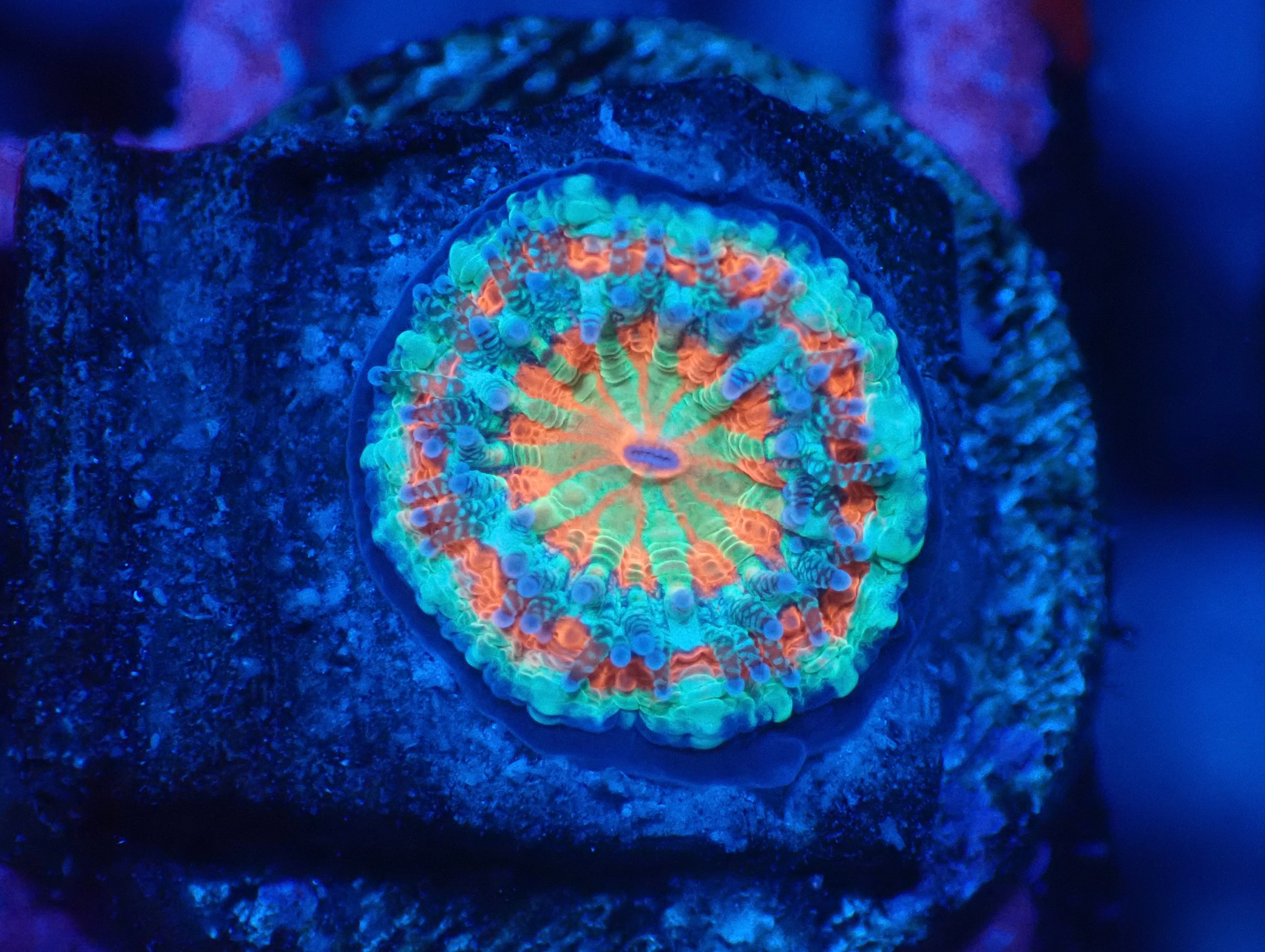 オーストラリアのMonsoonAquaticsの水槽環境下にて産卵した成育したカクオオトゲキクメイシになります。