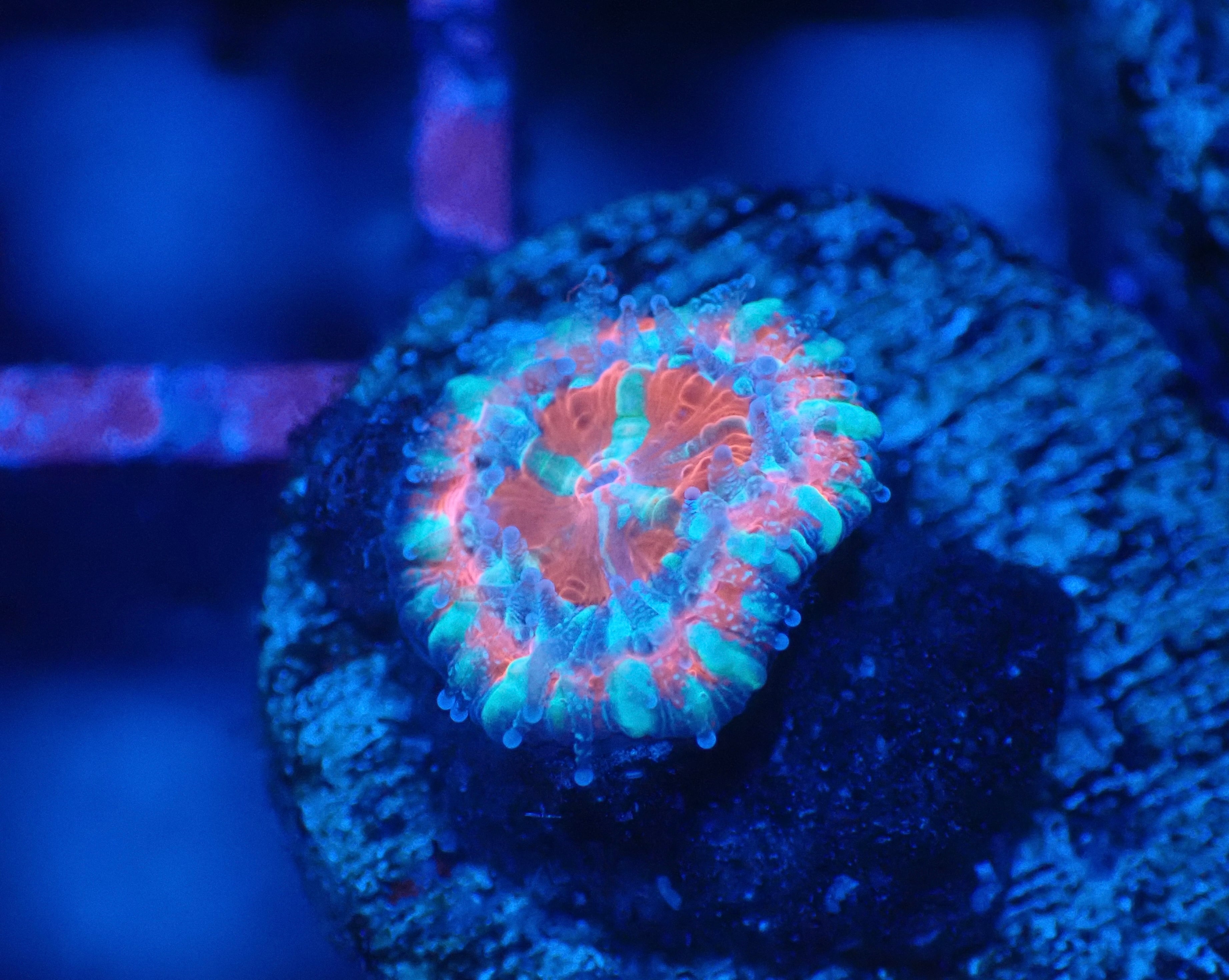 オーストラリアのMonsoonAquaticsの水槽環境下にて産卵した成育したカクオオトゲキクメイシになります。