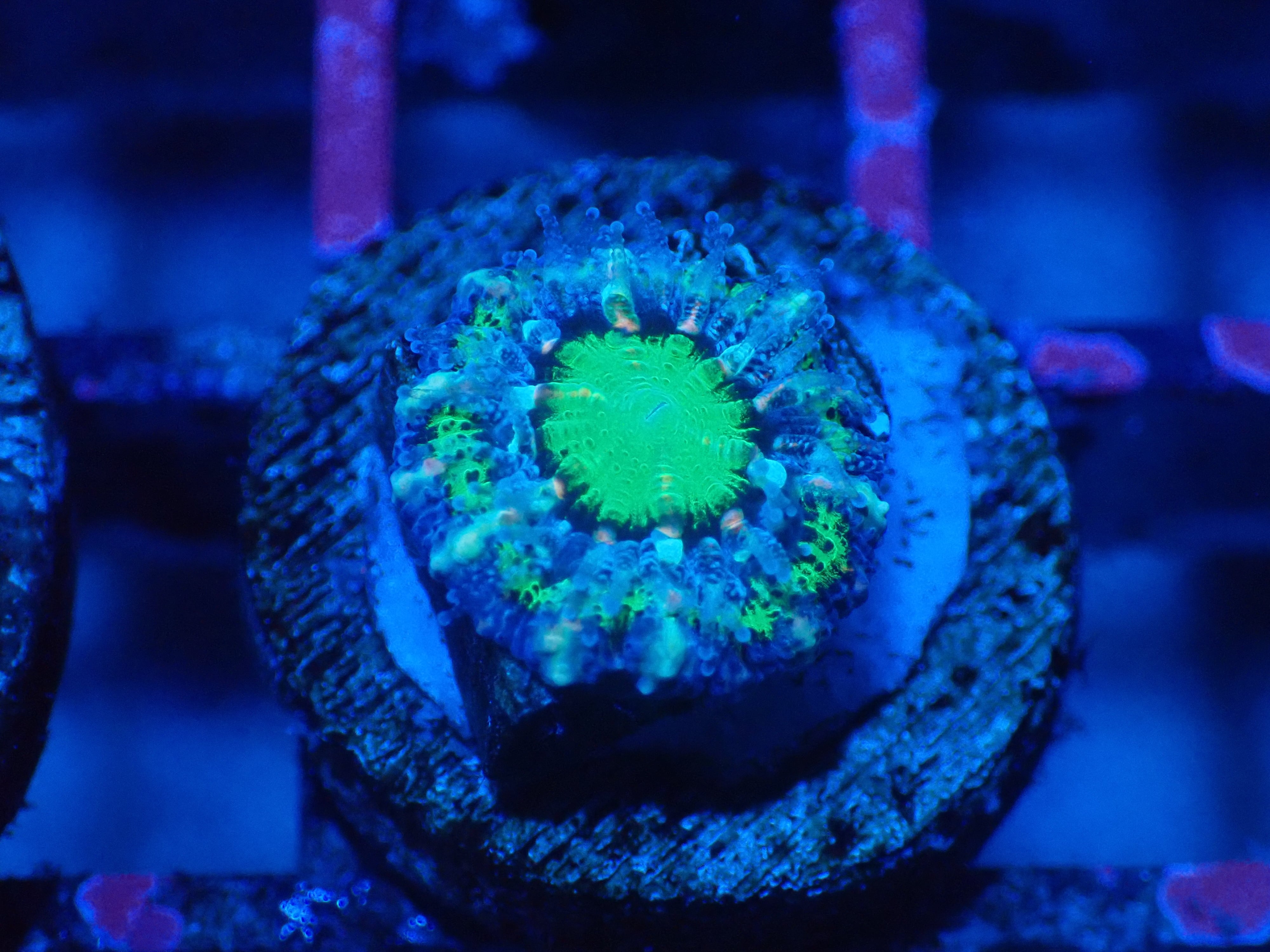 オーストラリアのMonsoonAquaticsの水槽環境下にて産卵した成育したカクオオトゲキクメイシになります。