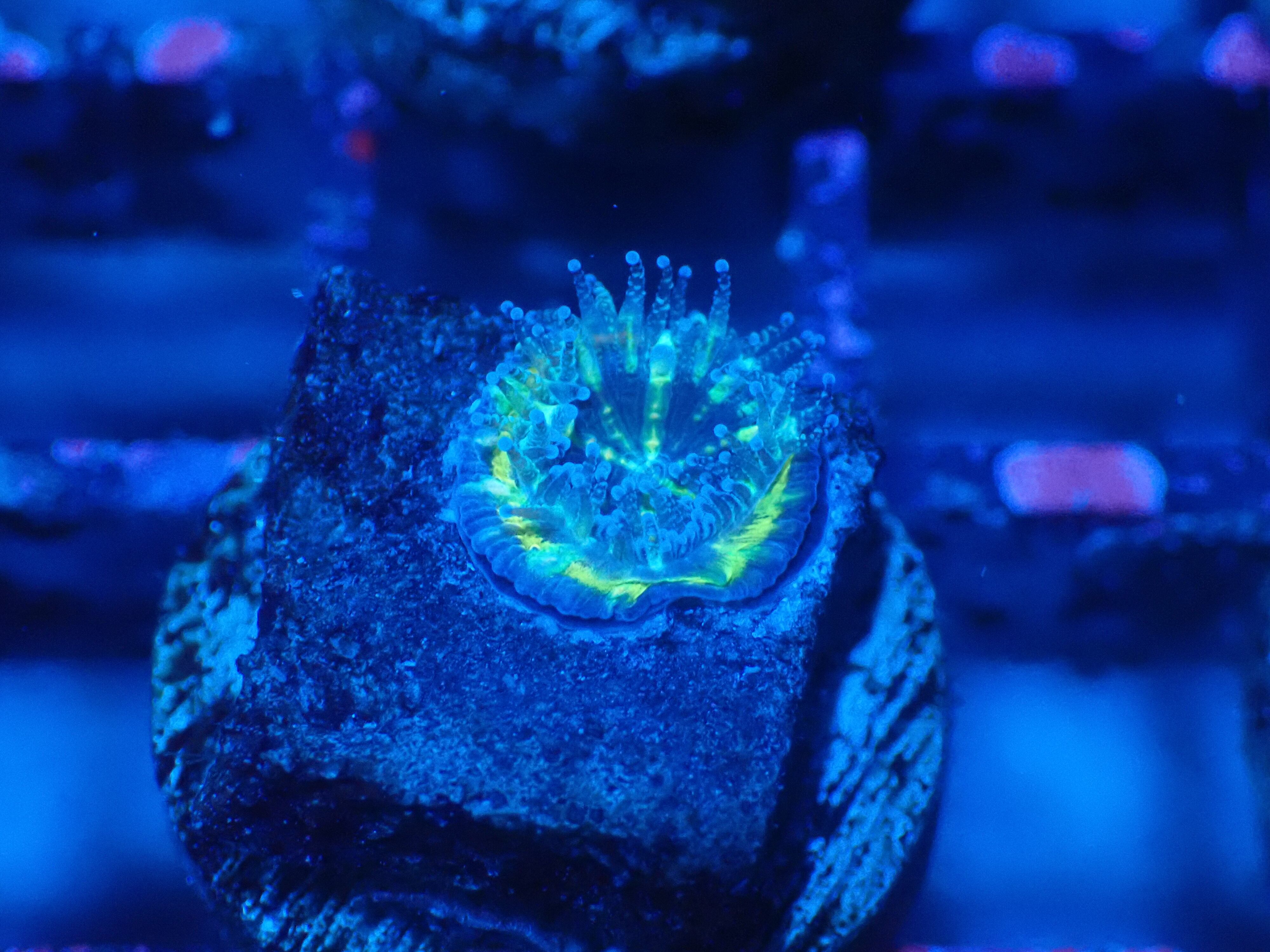 オーストラリアのMonsoonAquaticsの水槽環境下にて産卵した成育したカクオオトゲキクメイシになります。