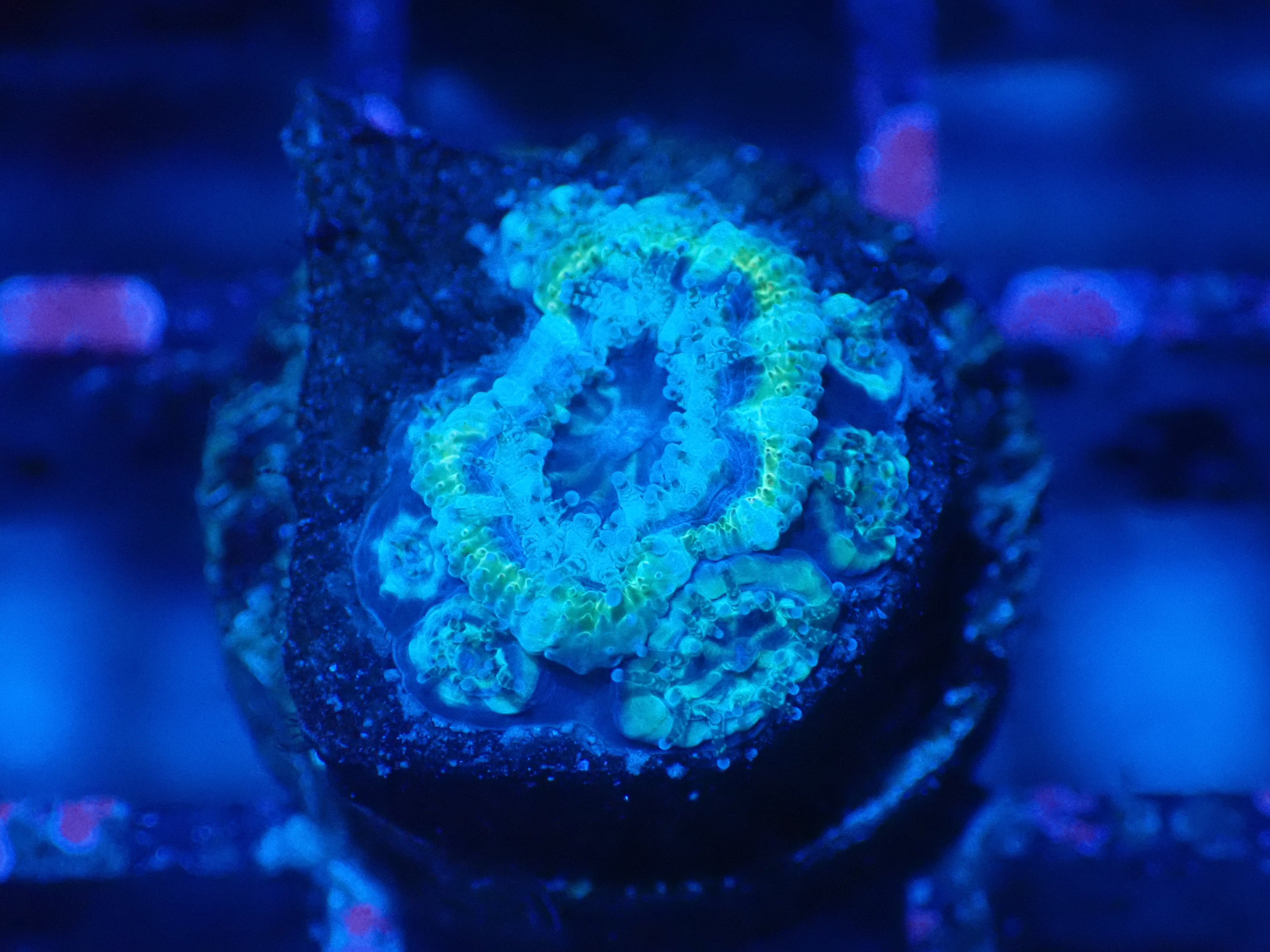 オーストラリアのMonsoonAquaticsの水槽環境下にて産卵した成育したカクオオトゲキクメイシになります。