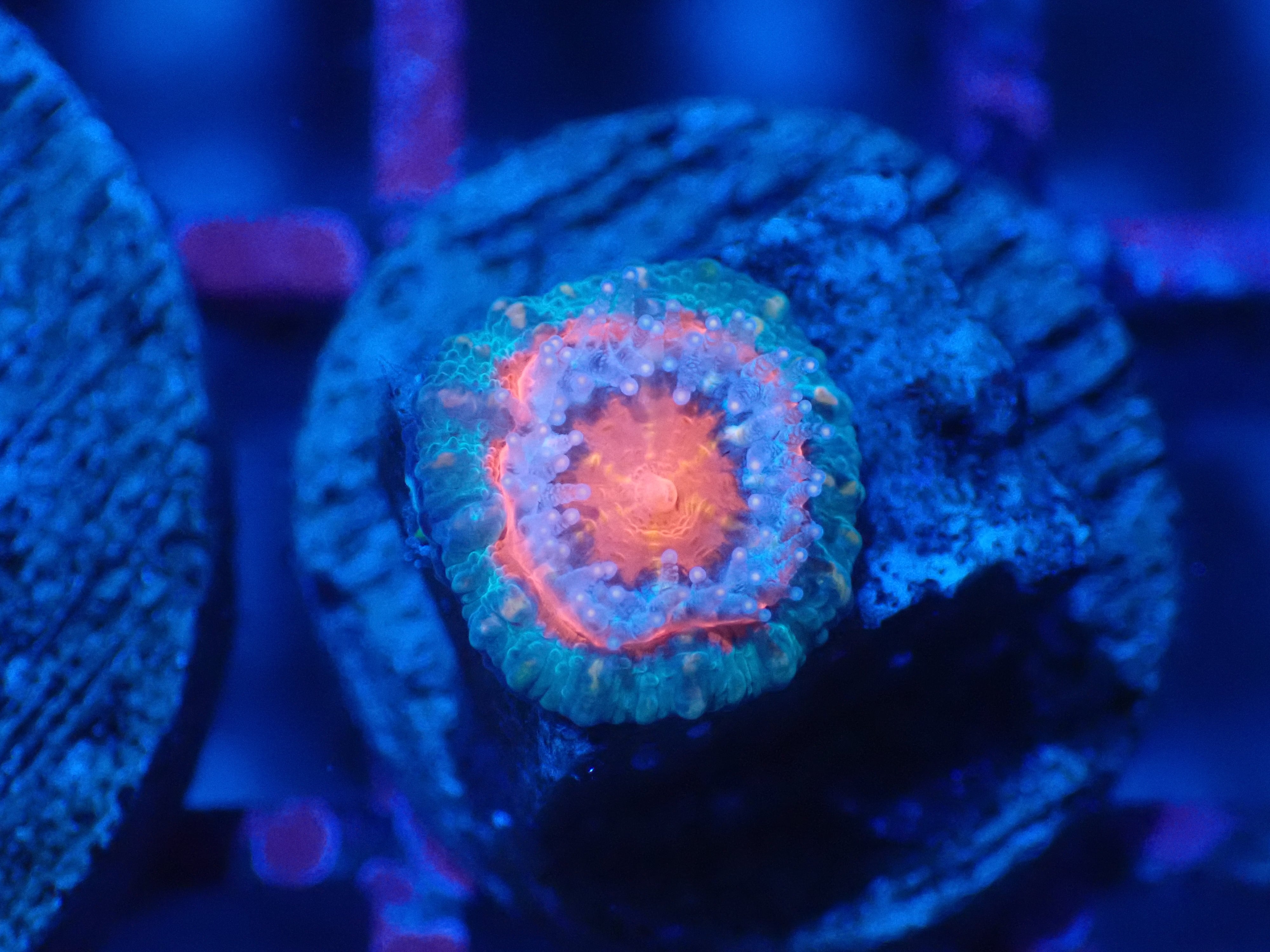 オーストラリアのMonsoonAquaticsの水槽環境下にて産卵した成育したカクオオトゲキクメイシになります。