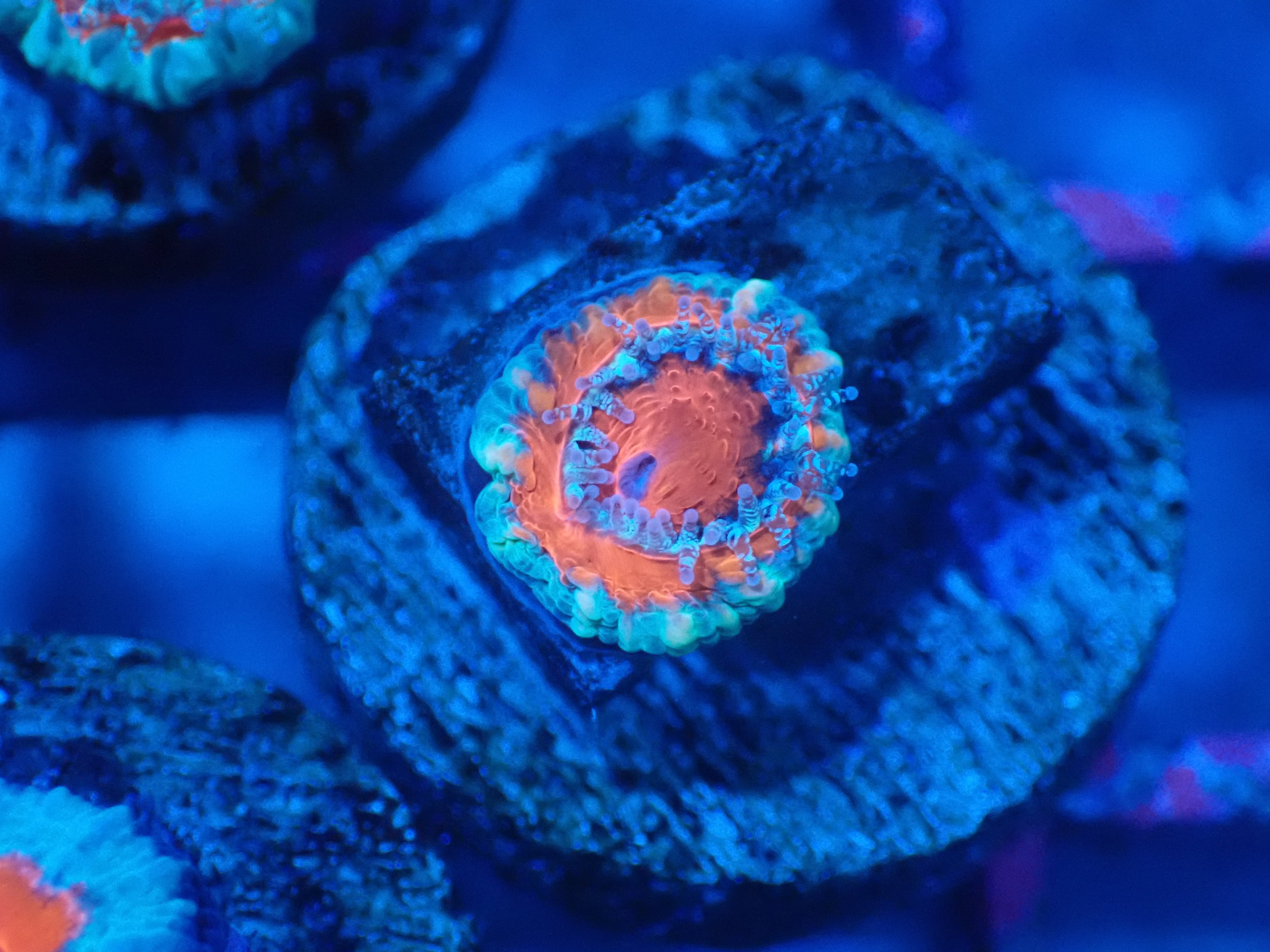 オーストラリアのMonsoonAquaticsの水槽環境下にて産卵した成育したカクオオトゲキクメイシになります。